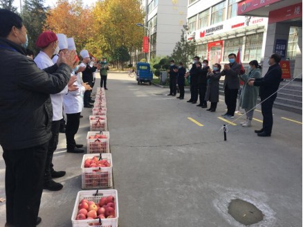 随后,呼丽萍研究员代表中心党支部表达了对后勤和保卫人员的问候与感谢,她说:“在抗疫期间正是因为有你们后勤餐饮中心和保卫处各位员工的无私奉献,才使得学校疫情防控取得骄人的成绩,苹果代表着平安、又是提高人体免疫力的水果,祝愿大家都能平安健康”。后勤保障部员工代表刘大川对甘肃省大樱桃技术创新中心党支部表达了衷心的感谢,表示他们将一如既往地发扬抗疫精神,忠诚履职,以更加饱满的工作热情继续做好后勤保障工作。