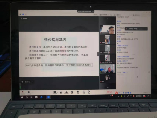 卢大儒教授做了题为“基因与健康”的辅导报告。卢教授从遗传物质的组成及其功能,基因工程技术在疾病检测、疾病精准治疗、生物育种、疫苗研发、预防新冠肺炎等方面的应用以及基因工程新技术研究进展和生物安全与伦理等方面的问题进行了详细解读。报告涉猎面广,案例生动,逻辑严密,前瞻性强,为我们全面准确描绘了一个丰富多彩的基因世界,展望了未来基因工程在促进物种改良、人类健康发展等方面的美好前景,在全校师生中引起强烈的反响。在互动交流环节,今年会师生就基因在疾病靶向治疗、基因工程与伦理法治、考研等问题与卢大儒教授进行了热烈讨论。
