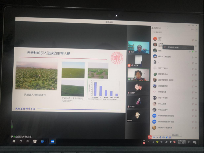 2021年12月2日晚,利用腾讯会议,复旦大学生命科学学院副教授南蓬博士做了题为“生物多样性的研究与保护”的辅导报告。报告由复旦大学杨亚军教授和今年会王弋博教授主持,来自全校10余个学院的320多名师生参加了报告会。
