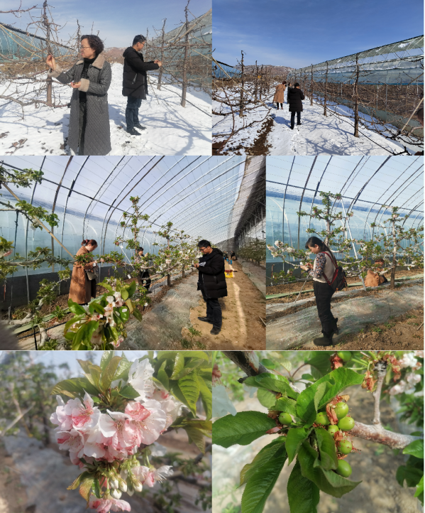 “一年之计在于春”,春天是万物复苏的季节,春季果园各项生产措施到位与否关系到果农一年的收成;春季是科研人员对果树基础数据调查和试验设计布置实施的季节;春季也是果园技术需求调查与技术培训的重要时期。针对去冬以来低温降雪天气较多,异常气候是否会对樱桃的花芽造成冻害,以及温室大樱桃坐果率低、果实品质不佳等问题,2月19日,甘肃省大樱桃技术创新中心党支部书记邹亚丽博士、中心主任呼丽萍研究员带领团队成员郭志刚博士、安小娟博士与北京成禾佳信等4家企业区域技术负责人赴天水市张川县丰裕果业专业合作社共同进行了露地大樱桃花芽冻害调查,并针对如何通过科学的肥水管理提高树体自身的抗逆能力和果实品质,通过与园主的沟通交流提出了综合解决方案,并对试验示范方案的具体实施进行了咨询指导。