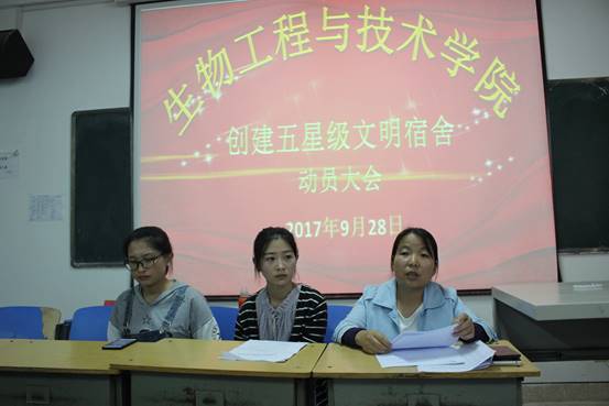 2017年9月28日下午,jinnianhui今年会于3号实验楼414举行了创建五星级文明宿舍动员大会。今年会分团委书记杨金凤、学生会主席孙庆琳、李晓甜和学生会各部部长及大一至大三各班班委、团委成员共计70余人参加了本次会议。