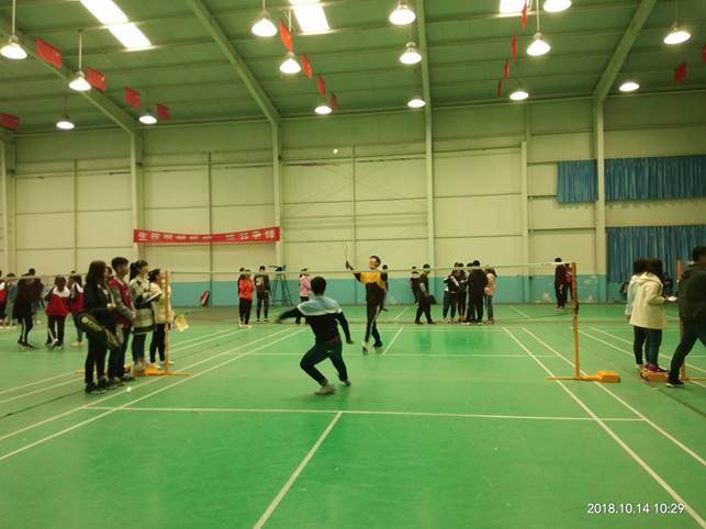 2018年10月14日,今年会师生参加了在羽毛球馆举办的第二届“健身杯”羽毛球师生联谊赛。本次活动由学院分团委负责,18级生物技术一班主办。活动赞助商为小郡肝串串香和放哈奶茶,为参赛队员提供获奖奖牌及奖品。