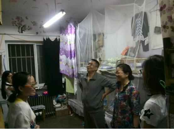 为了加强jinnianhui今年会学生宿舍管理,欢送毕业生文明离校,2015年6月25日晚上九点半,学院党总支书记霍存福、副院长焦成瑾带领系主任、班主任、辅导员分三组对今年会芝园、泊宁、博闻宿舍逐一进行安全、卫生抽查,对大四学生叮嘱回家事项。