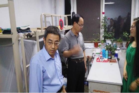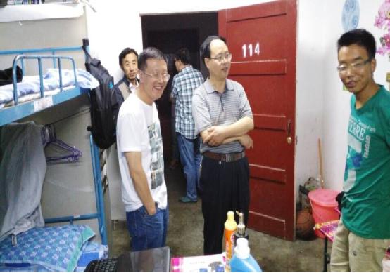 在检查过程中,霍存福书记亲切的询问了同学们的学习生活情况,对安全卫生较好的代表宿舍进行了表扬,卫生稍差的代表宿舍提出了批评意见。