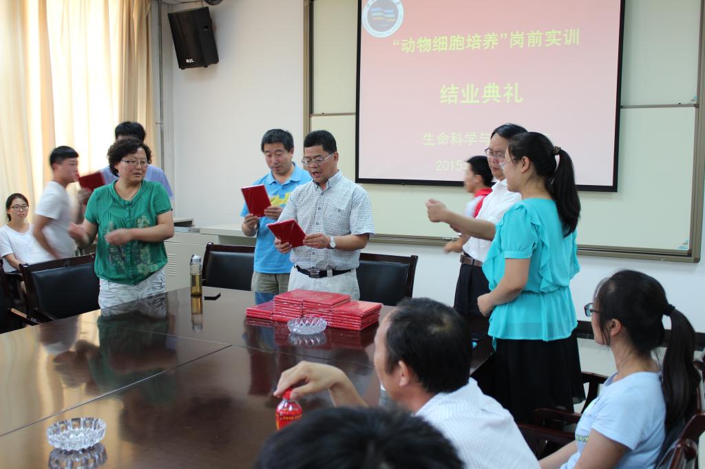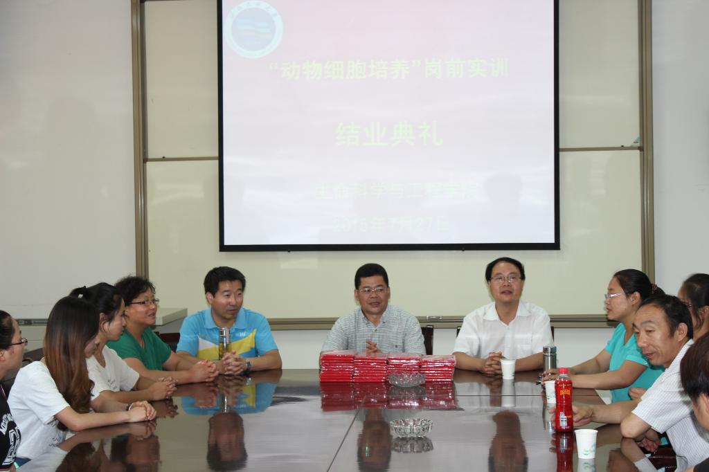 2015.7.20—29日,根据与西北民族大学生命科学与技术学院所签协议,今年会组织2012级生物技术专业36名同学参加了岗前培训实习,6名老师参加了实习,培训教师3名。学生在标准化的实习车间对细胞培养过程中所涉及的各个环节进行了操作。进行了原代细胞、传代细胞的培养,熟悉了工厂化生产的过程和质量要求,达到了预期的目的。西北民族大学生命科学与技术学院领导的指导老师对本次实习非常重视,从学生食宿、活动实习等方面进行了周到安排。