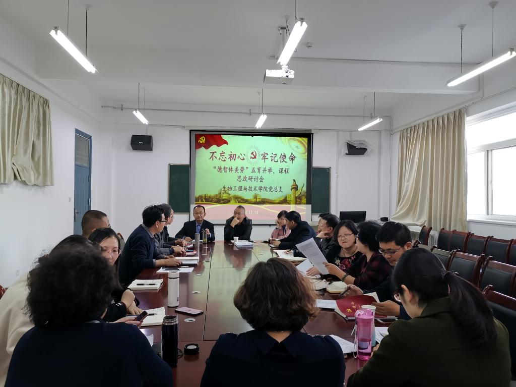 通过研讨,大家既明确了认识并再次对课程思政各方面内容剖析和解读,不断碰撞出思政教学教案、授课方式地新思路和方法,确保实现课程思政与各门专业课程同向同行。研讨会上,讨论了“思政课程”实施方案,并就方案进行补充,提出课程思政不能太生硬,要适应学生的知识层次,强调“思政”元素要自然地融入到课程中;其次,确定了今年会4门专业课程率先开展思政示范课,这4门课程分别是生物化学、普通生物学、分子生物学、食品营养学,所涉及4个教研组表示认真思考、组织实现专业课程与思政内容的有机结合,充分挖掘“思政”元素,进一步将课程思政落到实处;同时,启动今年会课程思政教学比赛,以比赛的方式促进各位教师对思政课程建设融合的新思考;最后参会者充分讨论、认真审核各门课程的思政设计方案,并提出相关修改意见。