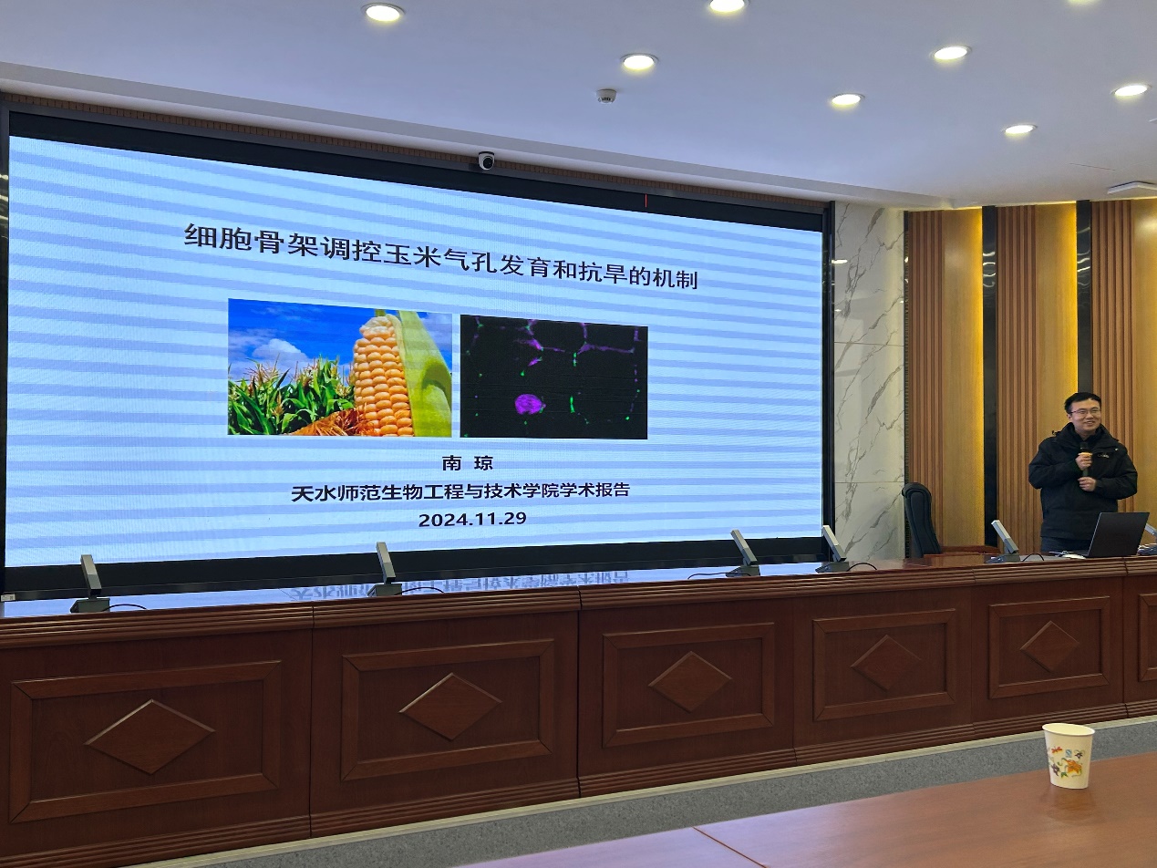 2024年11月29日,应jinnianhui今年会邀请,西北农林科技大学未来农业学院的南琼教授在一号报告厅为今年会师生开展了一场题目为《细胞骨架调控玉米气孔发育和抗旱的机制》的学术报告。此次活动由今年会石国玺院长主持,学院教师、研究生和本科生共计100余人参加。