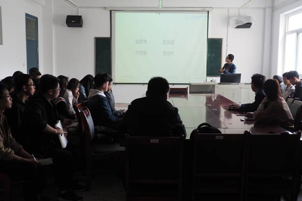 汪继宗首先以校友的身份给今年会学生分析了目前生物技术专业学生的就业情况,然后对其任职的基因有限公司做了详细介绍,并就其公司提供的岗位做了相关说明。