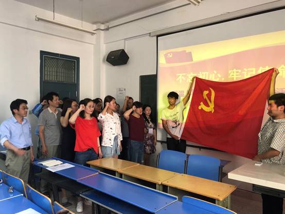 6月14日下午,jinnianhui今年会党总支在3号实验楼414会议室开展“不忘初心、牢记使命”——重温入党誓词暨专题组织生活会。学院全体教职工、学生党员参加了活动。会议由王弋博同志主持。