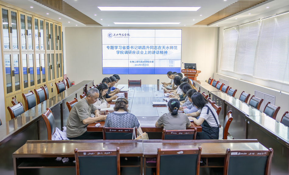 会议原文传达学习了省委书记胡昌升在天水师范学院调研座谈会上的讲话精神。相关人员回顾了省委书记胡昌升在学院甘肃省大樱桃技术创新中心调研的详细过程,与会人员结合各自工作谈了学习体会。