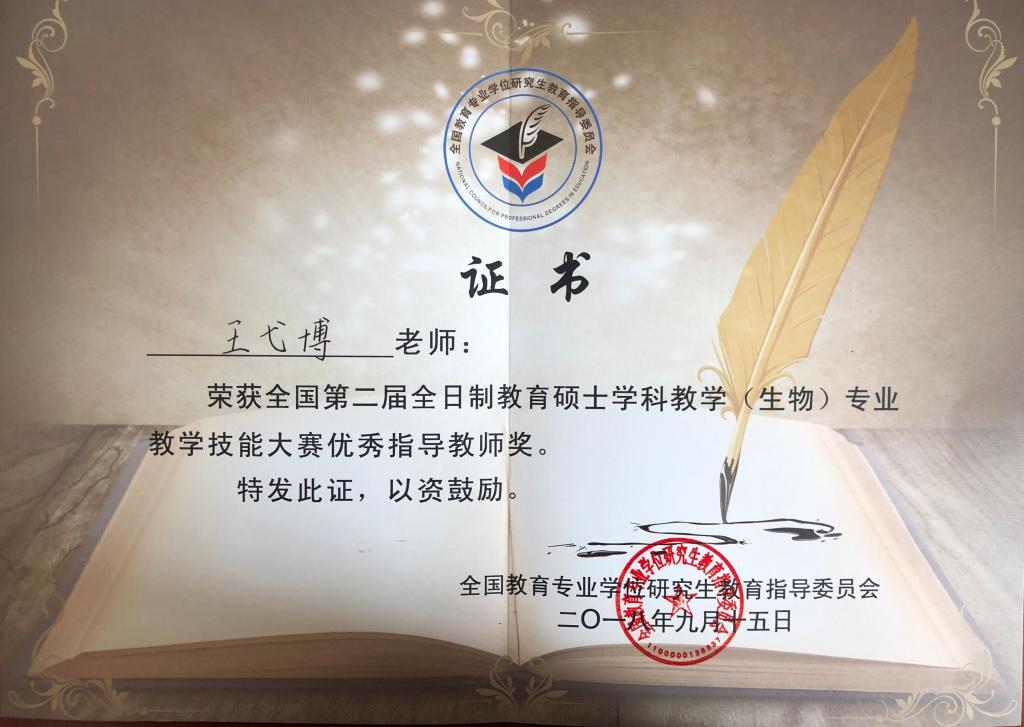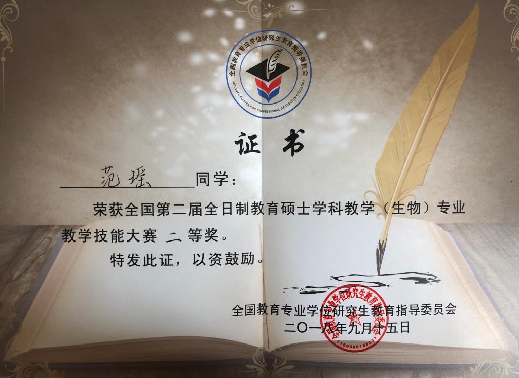 今年会教育硕士范瑶荣获2018年全国全日制教育硕士生物专业教学大赛二等奖