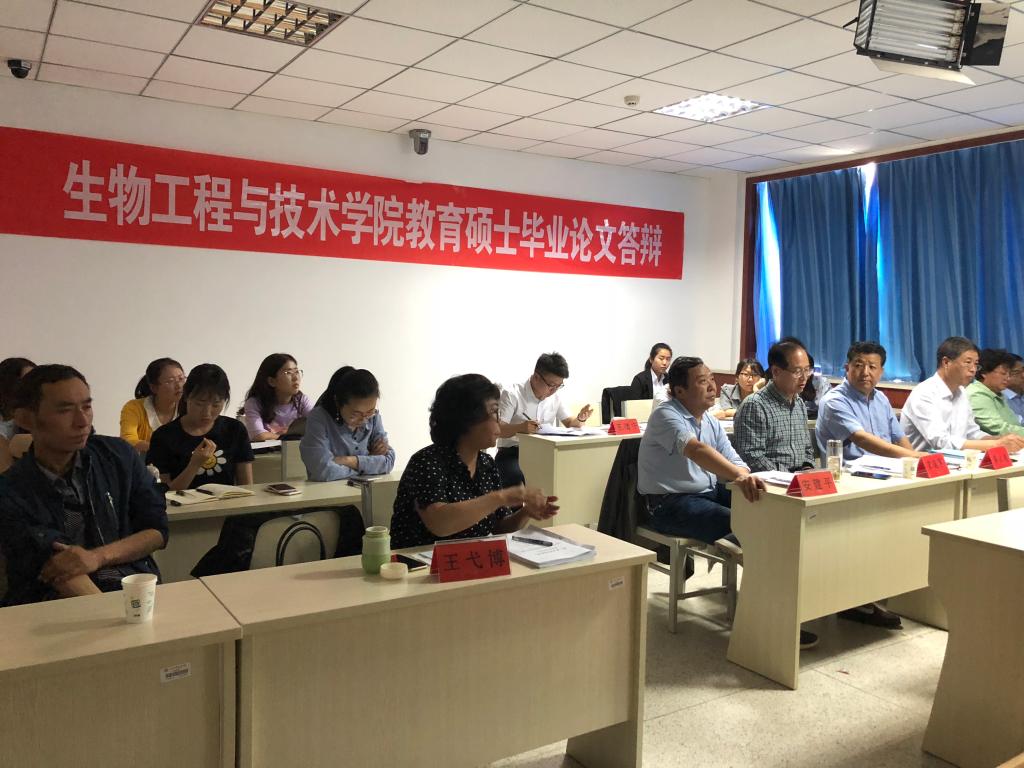 2018年6月2日,在4号实验楼517微格教室举行了jinnianhui今年会2018届教育硕士毕业论文答辩会。为保障答辩质量,学院专门成立了教育硕士答辩委员会,答辩委员会主席由西北师范大学生命科学学院龚大洁教授担任,成员包括宋廷军、石志学、安建平、焦成瑾、王弋博、袁毅君,答辩秘书为王倩宁。