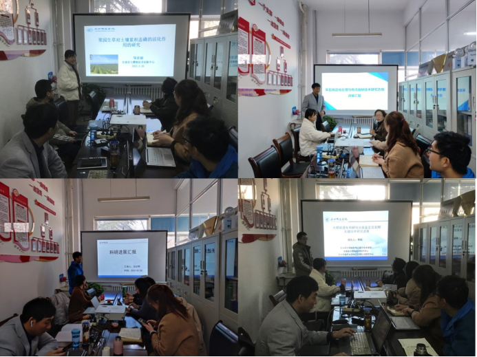 会上支部党员就大樱桃提质增效各环节问题展开了热烈地研讨交流,支部党员、“中心”主任呼丽萍研究员就大樱桃种质资源收集、保存评价与新品种选育,大樱桃高品质栽培新模式、营养与生态调控新技术,大樱桃采后贮存保鲜与高值化利用,果园中果、畜、草循环生态新模式构建等方面与大家展开交流,并指出 “中心”,理论基础研究与应用研究并不冲突,反而是相互补充、相互促进。广大年轻教师首先要开展广泛的调研,根据生产中的疑点、难点,准确找到研究的切入点,再进行基础理论研究,形成“在生产中寻找问题——理论研究解决问题——再应用于生产之中”这样的产学研闭环,就可以达到事半功倍的效果。