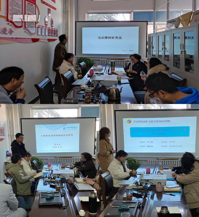为进一步加强创新与技术应用研究,提高科研能力,不断发挥党员模范先锋作用,有效促进服务地方经济能力和促进地方乡村振兴,2月26日,甘肃省大樱桃技术创新中心党支部以“发挥科研优势、促进樱桃产业提质增效”为主题,专题研讨了大樱桃产业链中的关键问题。党员邹亚丽等7人就前期在果园土壤肥水调控、大樱桃采后保鲜、樱桃果酒研发、种质资源调查、樱桃园蚧壳虫防控方面已取得的研究成果和后续工作计划向支部做了汇报。